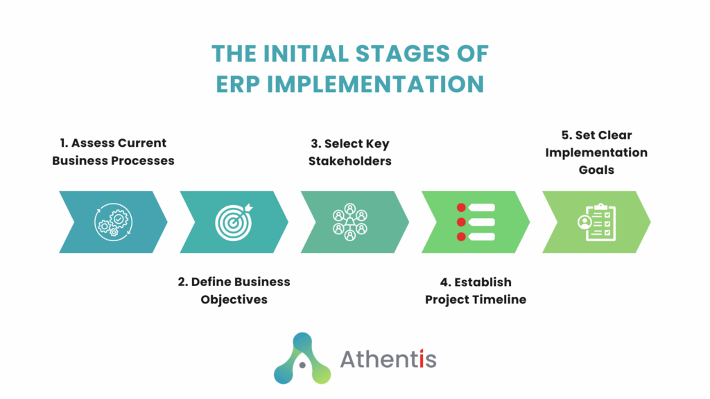These initial steps set the foundation for a smooth implementation process. A well-executed early phase is critical to minimize risks and ensure the ERP system will meet both current and future business needs.