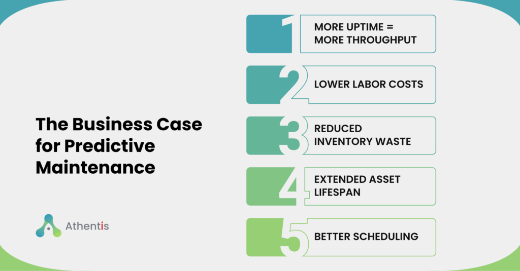 When equipment fails mid-process, products may spoil, get damaged, or be misrouted, especially in temperature-controlled or high-velocity environments. Predictive maintenance prevents these errors by catching failures before they disrupt inventory flow.